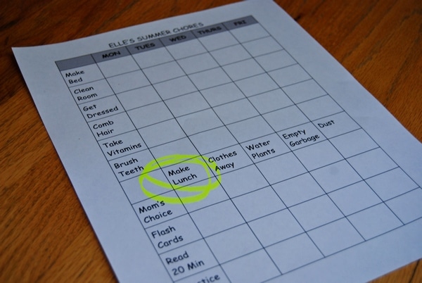 Elle set a summer goal to learn to make lunches. So to help Elle in her quest for cooking competency I made ‘make lunch’ a chore every Monday. This weekly accountability proved to be very helpful.