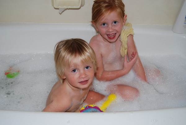 We did bunches of B activities. Croft took a bubble bath with brother.