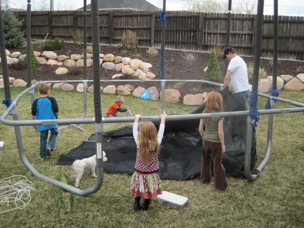He is patient as they work side by side and he even takes on stray helpers like the neighbor kid whose dad was “too lame to put up their tramp” and my sister’s dog. We and he know he could do it faster alone, but the kids want to help so he finds ways they can be involved.