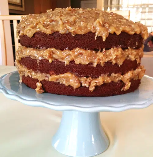 See Chad had requested a German Chocolate Cake for his birthday dinner and I took his request seriously. I wanted the real deal. No boxed mixes with store bought frosting. I wanted to make the cake and frosting from scratch. I wanted a fancy 3 tiered, layered, cake platter, kind of cake. I wanted Chad to know I loved him, was willing to spend time on him, and I wanted to develop talents and learn something new.